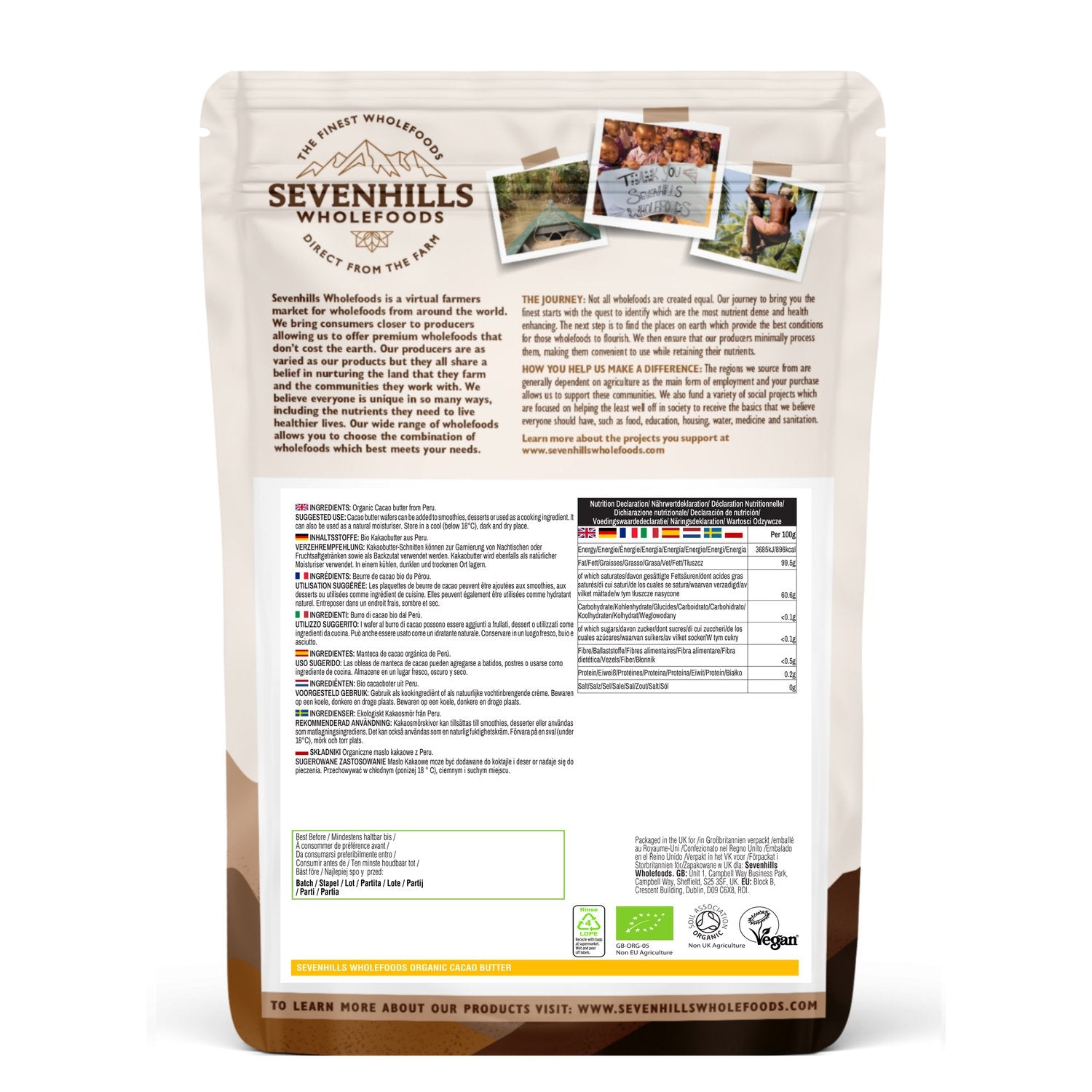 In recent times, Cacao has attracted attention due to its nutritionally-rich profile, and the health benefits associated with its antioxidant content. Cacao butter is the oil content of Sevenhills Wholefoods’ premium Cacao bean and contains several beneficial saturates fats. Used by the Mayans and Incans for hundreds of years, cacao butter is an ideal ingredient for skincare products and for making delicious chocolate.